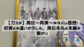 宝塚OG総出演の美しい舞台刀剣乱舞・禺伝、再演のネタバレ感想です。初演から何が変わったのか、3公演通って気づいたことを考察込みでまとめました。初演履修済みの方はもちろん、刀ステが気になっている方にも。刀ステファンなら再演で新たな地獄が待っています。